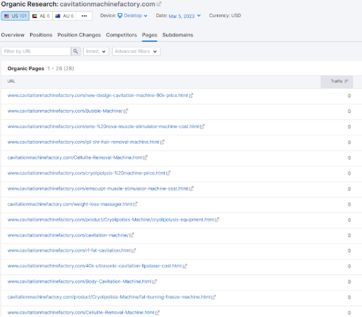全站美国流量为0,关键词101个(数据截止到2023年3月5日)