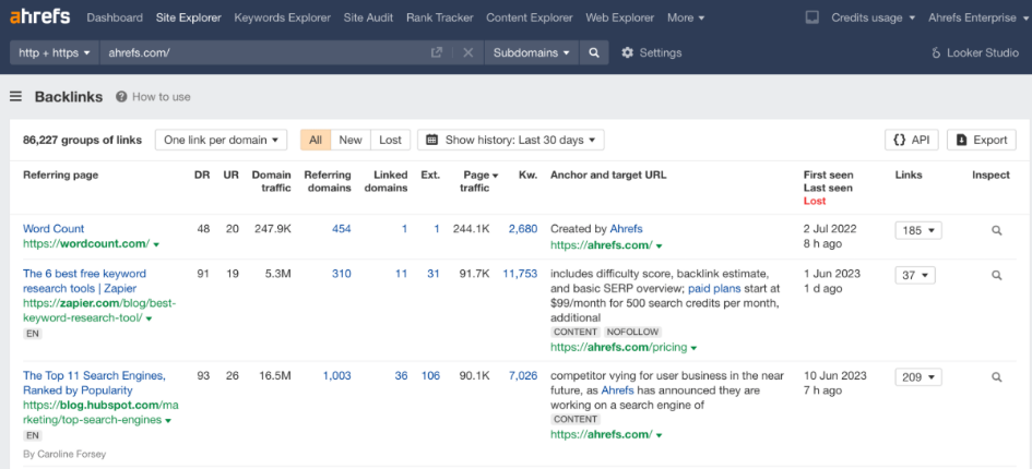 现在教你一个有趣的玩法:用Ahrefs看看竞争对手最近和谁建立了链接。如图: