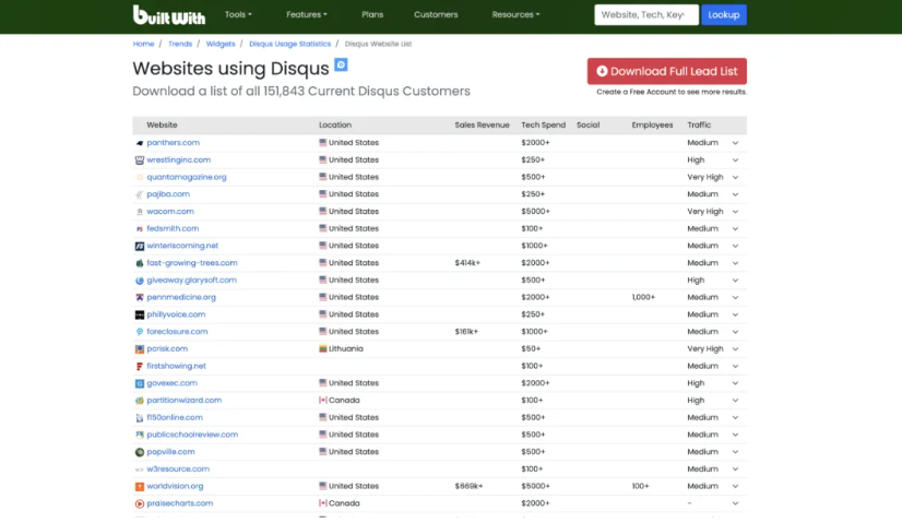 而且可以举一反三,很多网站可能blog系统、post系统也是用第三方服务商提供的,那我们只需要找到这些提供网站UGC(用户生成内容)的第三方服务商的名字,那就可以用built with查一下都有哪些网站在使用,有没有我们发外链的机会。