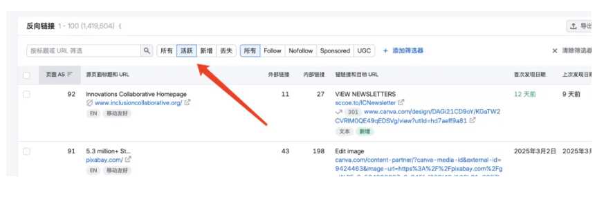 而且免费版本,Ahrefs这里显示的都会是该域名下面精选、优质的外链,因为我测试过好多个网站,这里显示的外链DR都是比较高的数值。