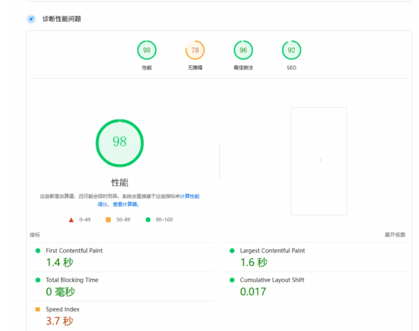 PageSpeed达标,移动端无阻塞。