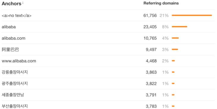 其他相关变体的锚文本大约占10%。如图阿里巴巴外链: