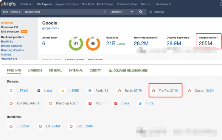 查看网站流量数据的工具有SEMrush、Ahrefs、SEO Quake工具。如果您想了解哪些外部链接为您的网站带来了流量,可以使用Ahrefs工具进行查看。如图: