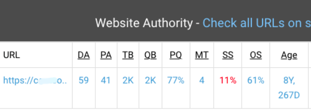 DA(Domain Authority)网站权重,反映了一个网站的实力。