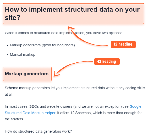 还记得您的每个H标题都可以是一个单独的搜索结果吗?为了实现这一点,您尽可能将某些标题写成页面标题。包括一个与页面部分相关的关键词,并以用户常见的搜索查询的方式表达您的标题。