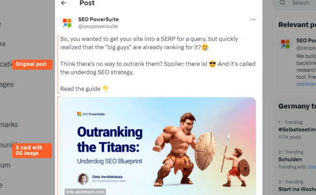 4、有一些替代标题。Facebook和Twitter(X) 在您页面的<head>部分有自己的标签,因此如果您为这些社交网络使用替代标题,Google 也可能使用它们来代替您的标题标签。